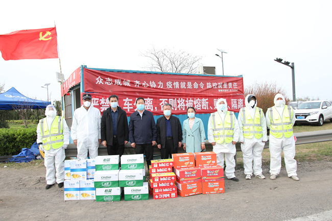 4月14日下午,青口公司黨委副書記、工會主席梁永,副總經(jīng)理楊守明前往高速出入口檢查檢疫卡點,為黃沙坨社區(qū)防疫一線工作人員以及下沉社區(qū)的公司黨員志愿者送上慰問品,傳達組織的關(guān)心關(guān)愛。
