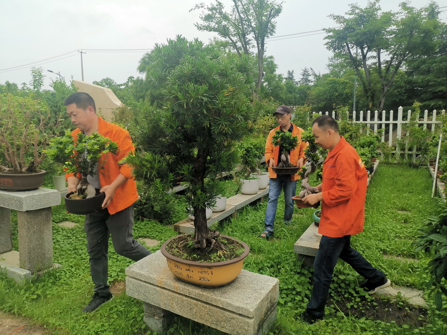 前期,該公司迅速布置防汛工作,安排應急隊員、值班人員24小時值守備勤。對花房以及辦公區域、休息室等進行重點防汛隱患排查,提醒各班組加固頂棚、圍擋等,保證盆景、綠植以及物料堆放做到固定、密封,防止發生次生災害。尤其對部分中小型盆景,提前做好轉移工作。同時對施工工地低洼處、園內排水等進行全面摸排,提醒晚上值班員工和上下班員工,注意人身和交通安全,遇特殊情況及時與公司聯系。